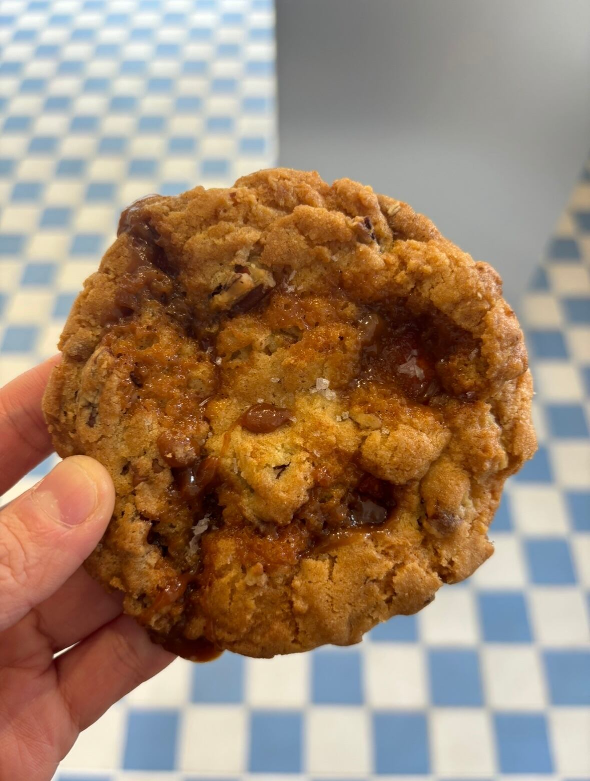 salted caramel cookies 自家製バニラ入りの生キャラメルと ピーカンナッツとキャラメルチョコいり。
